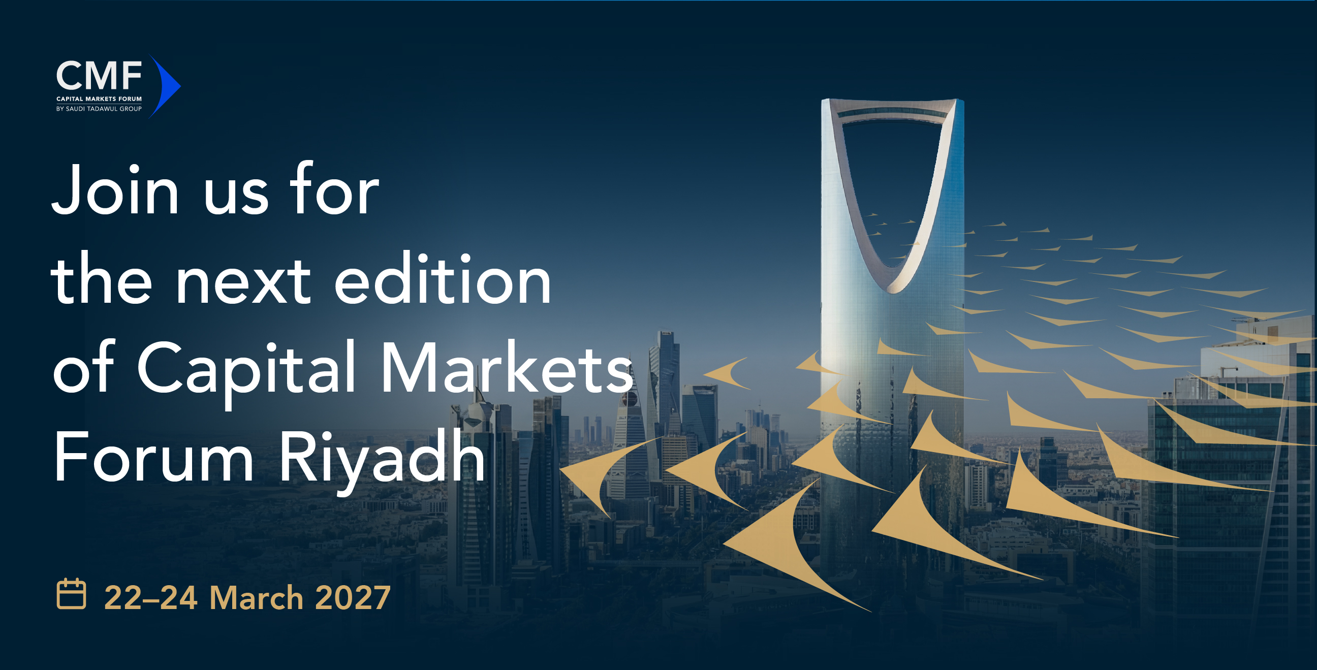 The Capital Markets Forum (CMF) is a premier global platform designed to foster interconnectedness between key financial markets worldwide. Organized by Saudi Tadawul Group (STG), CMF brings together influential stakeholders—including policymakers, investors, corporates, and innovators—to explore transformative trends and opportunities in capital markets. With the theme "Powering Connections", the forum serves as a catalyst for innovation, financial stability, and sustainable growth, while building long-lasting partnerships that drive progress across global economies. CMF reflects a commitment to shaping the future of financial ecosystems by unlocking cross-border investment potential and enabling dialogue on emerging technologies, policy reforms, and collaborative strategies. CMF embodies the vision of interconnected, adaptive markets that respond dynamically to a changing global economy.